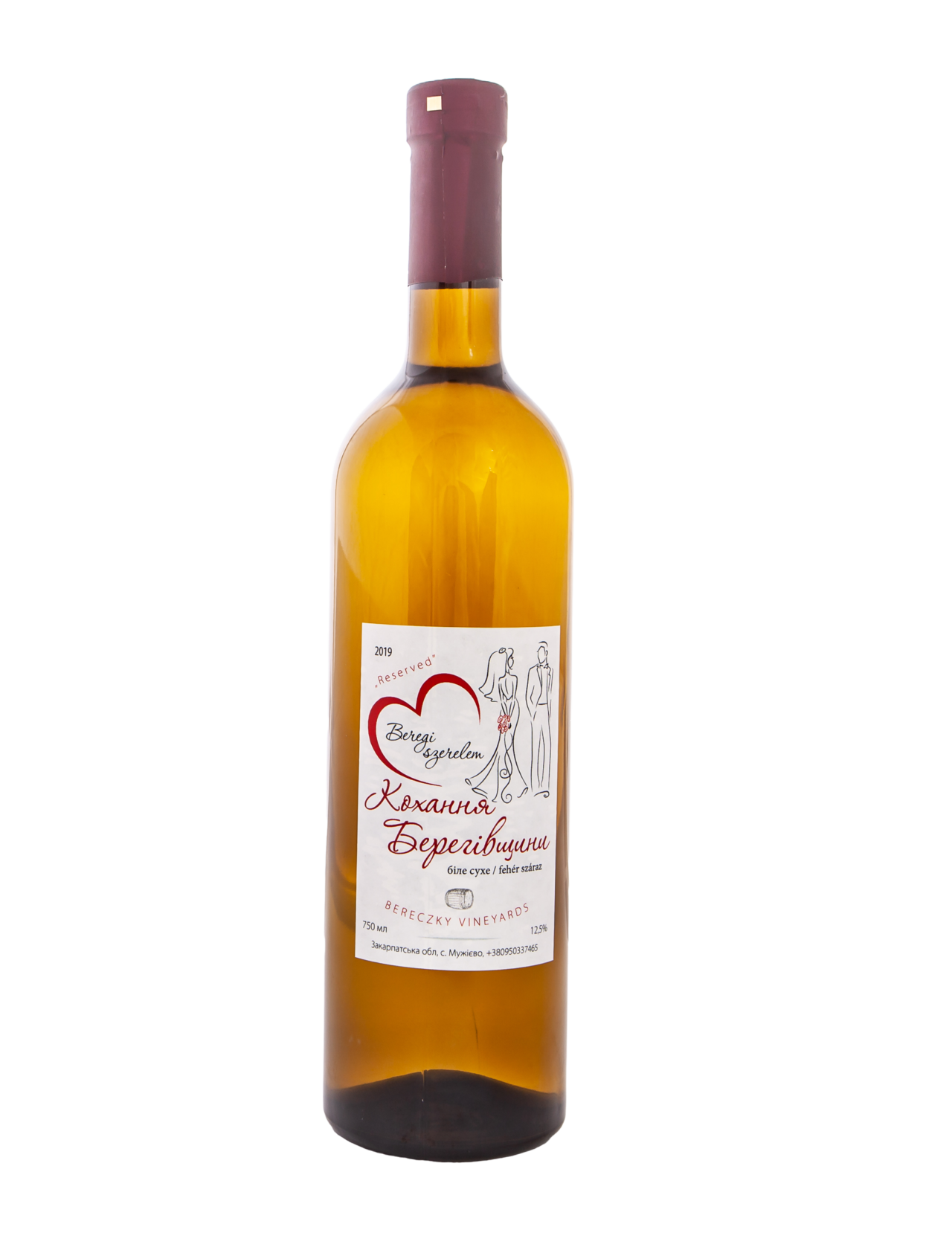 Купажне вино “Кохання Берегівщини” виготовлене зі сортів винограду Трамінер і Мускат Оттонель. Вино насиченого золотого кольору. Аромат стиглих кісточкових фруктів, ванілі, горіхів. Смак насичений, збалансований із доброю кислотністю. Температура подачі: 10-12 ° C. Смакує до салатів, молодих сирів, морепродуктів, риби, курки, тушкованого кролика. Температура подачі: 10-12 ° C.